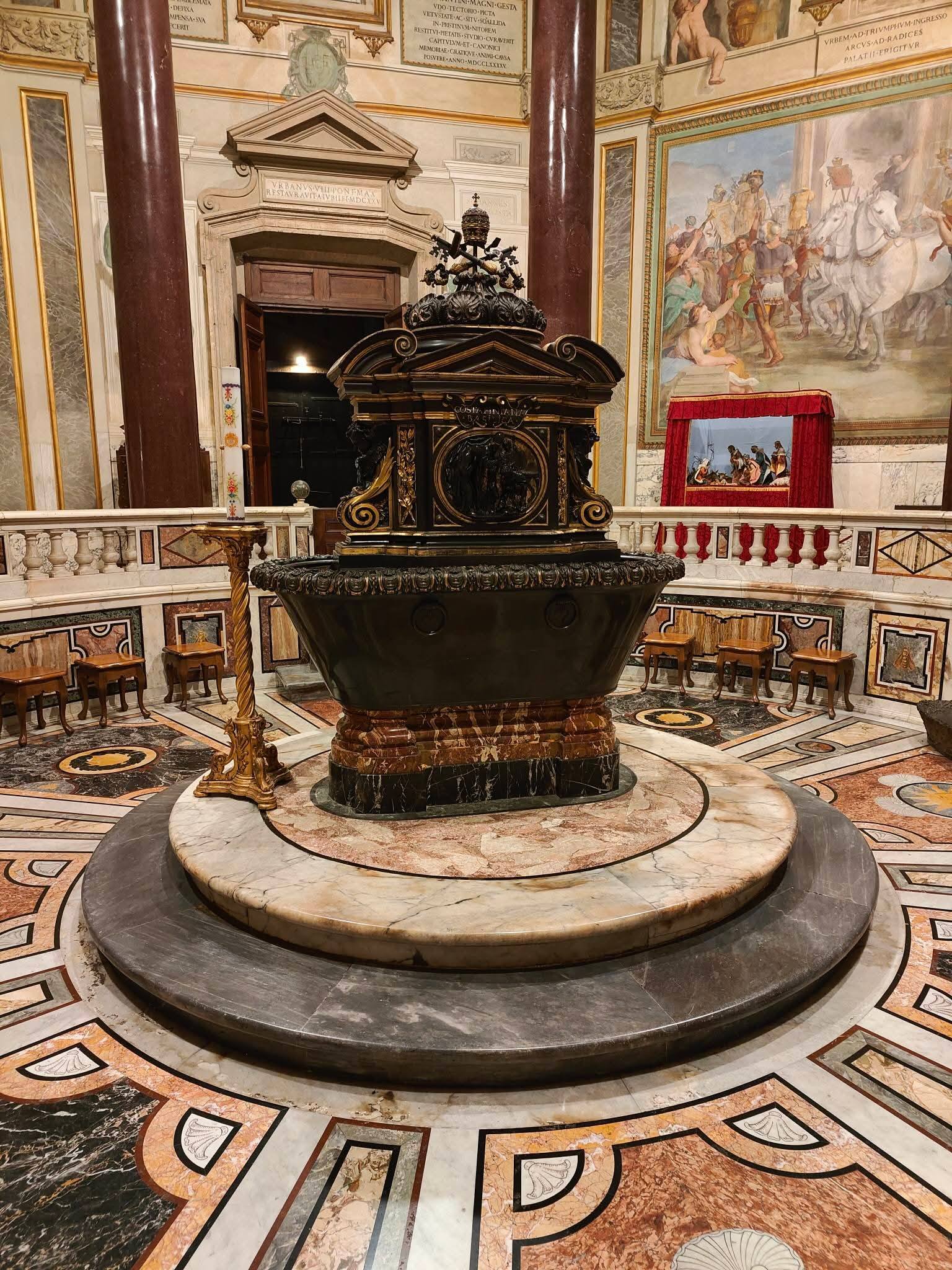 Pierwsza i główna kaplica chrzcielna Kościoła Rzymskiego – miejsce narodzin do „nowego życia” milionów rzymian dawnych wieków; pierwowzór wszystkich baptysteriów Europy. Kiedyś chrzczono tu wiernych w basenie z wodą, przez zanurzenie…